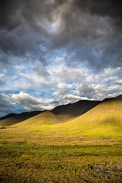 Цей кадр зроблено в горах Аляски. Незважаючи на фронтальне освітлення, тут є драматичність від неоднорідності сонячного світла.