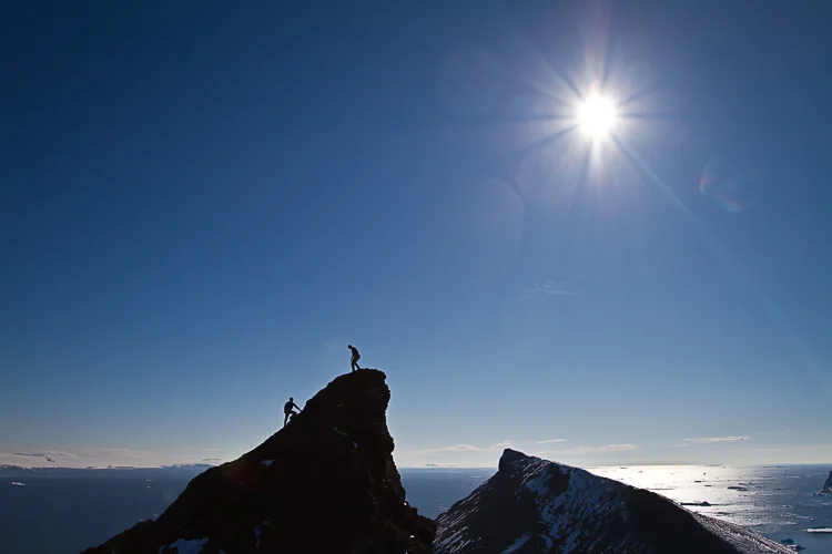 Фотографувати з гірських вершин непросто. Як правило, на таких зображеннях навколишній ландшафт виглядатиме малим. Найкраще знімати фото з піків, де гори схожі на кам'яні хвилі, а не змагаються у висоті один з одним. Це можна компенсувати шляхом додавання людини в кадр. Так ви забезпечите масштаб. Сфокусуйтеся на людині, а не на горах. Звичайно, це вийде майже портрет чи репортаж, не пейзаж. Проте світлина буде ефектною.